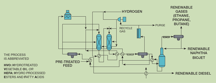 SAF can be produced in an existing RD plant with a relatively simple change in kit that relies on adding a catalytic process step to crack the longer diesel molecules into shorter kerosene molecules before a final distillation step to produce on-spec products. The role of hydrogen in all these process steps cannot be understated. In many cases, availability of hydrogen should be the first thing that a project team considers.