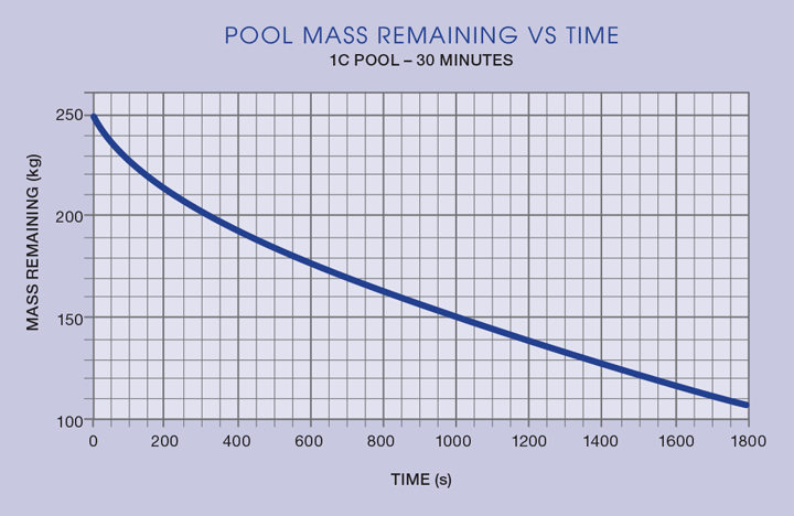 Initially, the vaporisation rate was rather high because the bund was at ambient temperature. The concrete base of the bund cooled almost instantly when ammonia was poured into it and this in turn slowed the vaporisation rate.