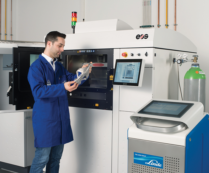As is well understood, the core AM process takes place within a closed chamber filled with high-purity inert gases such as argon and nitrogen. What is less well understood is that even after the atmosphere is purged, impurities can remain present in the chamber due to incomplete purging, via access through loose connections or within the metal powder itself. Even extremely small variations in oxygen can impair mechanical or chemical properties of alloys like titanium or aluminium, affecting composition of the end product and resulting in negative physical characteristics such as discolouration and even poor fatigue resistance. For industries at the forefront of AM adoption such as aerospace, automotive and medical, such negative production outcomes are critically important to avoid. Linde Gases has, over the past 4 years, developed new technology to overcome atmospheric impurities to give manufacturers optimal printing conditions. The result – ADDvance O2 precision – continuous analysis of the gas atmosphere, detecting oxygen levels with high precision without cross-sensitivity. Recognising O2 concentrations as low as 10 ppm, the unit automatically initiates a purging process to maintain the atmosphere as pure as needed. The technology is already in use at companies at the vanguard of AM including Liebherr Aerospace in France, leading car manufacturers in Germany as well as other partners, both industrial and academic.
