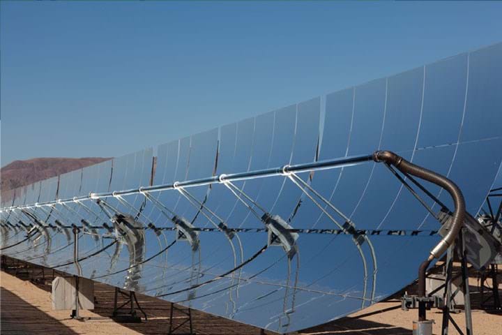 In thermal solar power, heat boils a liquid such as water to drive either a turbine for electricity or a shaft for a pump or motor. The advantage of thermal systems is that they do not depend on particular elements, but can be made from common materials, and components can be readily recycled. So for very large-scale use, they may be more sustainable. Shuman’s low pressure steam turbine could make smaller cheaper ones feasible.