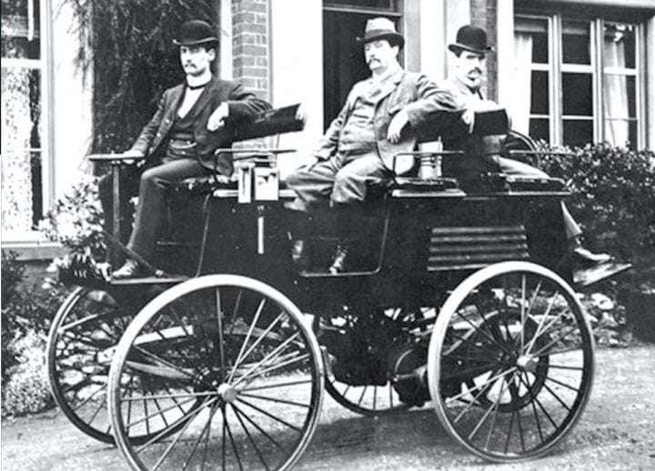 Actually, the first electric vehicle was a boat, in 1880. It is perhaps for this reason that many early cars had a tiller for steering. Parker produced cars with steering wheels, or for those who preferred a more traditional feel, with reins. He introduced hydraulic brakes and four-wheel steering.