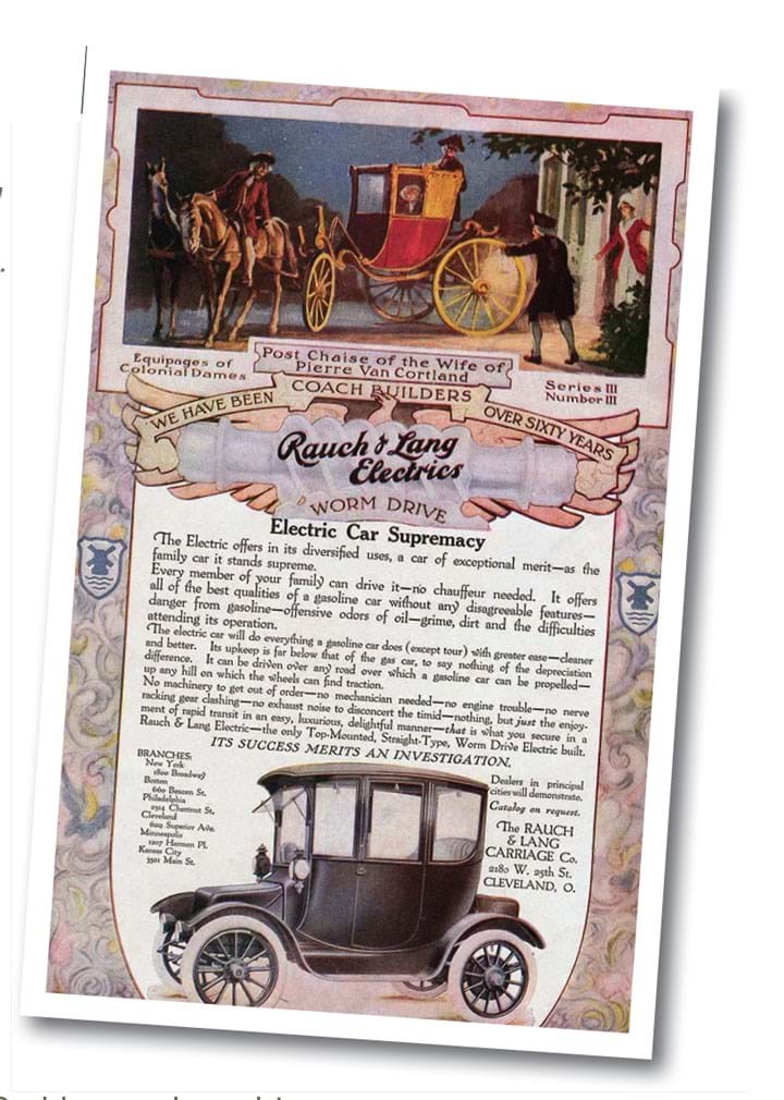 A 1910 advert (pictured, below) touted the advantages of electric over combustion, and admitted the one weakness: “The electric car will do everything a gasoline car does (except tour) with greater ease.” Nevertheless, within cities it was superior. It lacked smell, noise and danger of fire, with no gears needed, and started