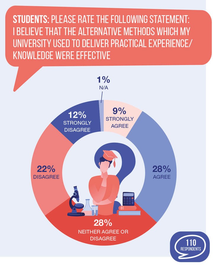 Students’ opinions were split on the effectiveness of alternative methods to deliver practical aspects of their courses.