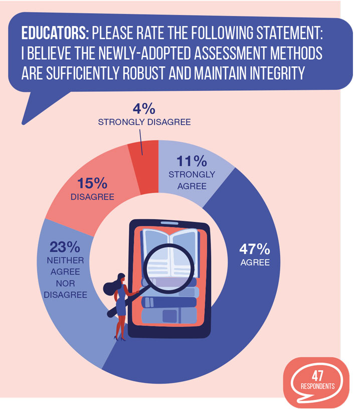 However, despite student concerns, when asked whether they believed novel assessments were robust and maintained integrity, most educators (of a total of 47 respondents) said they did.