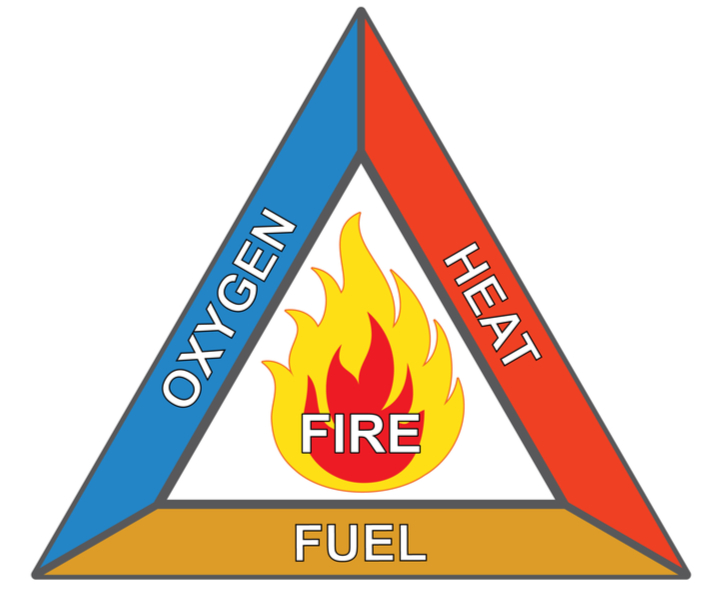 A couple of years ago, I gave a talk entitled Surviving the Chemical Industry; a safety talk for new engineering undergraduates in Chester. One of the topics I covered was the “Fire Triangle”, the necessary conditions for a fire being heat, oxygen and fuel, as below.