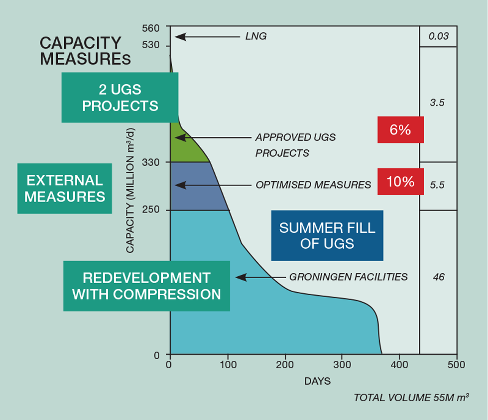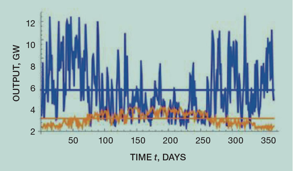 I recalled my experience planning the Dutch gas grid, supported by the massive Groningen field, in the 1990s, where gas demand had a similar sawtooth profile. We made sense of that data by creating a load duration curve (LDC) as shown in Figure 3. Daily demand is stacked in the LDC by magnitude, with day 1 being the highest demand day of the year and day 365 the lowest, producing a smooth, but sharply sloping curve. We generated this data through stochastic modelling of demand using historically trended weather and probabilistic equipment reliability data. Monte Carlo modelling allowed development of a high load or design case to size capacity measures, such as underground gas storage (UGS) facilities and other external measures. The shape of the LDC demonstrates the seasonal demand for gas, a direct equivalent to our 15–20% challenge.