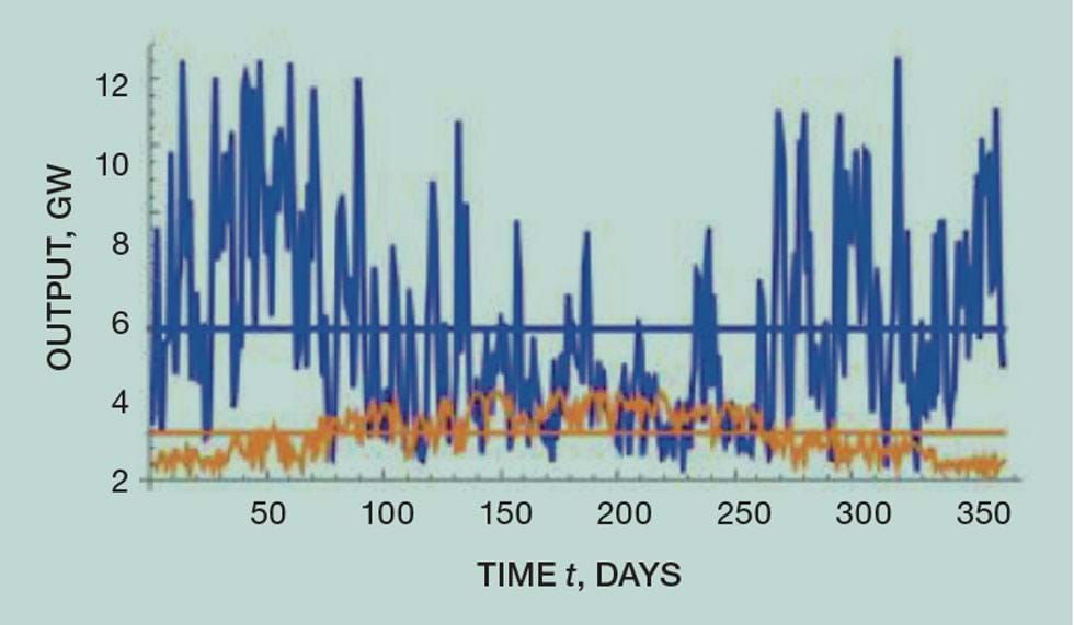 In Part 9B I looked to see how we could better quantify the measures needed to create the “skin” of the onion. Both demand and renewables supply have a sawtooth nature, such as shown in Figure 2, adding to the difficulty in understanding system balancing.