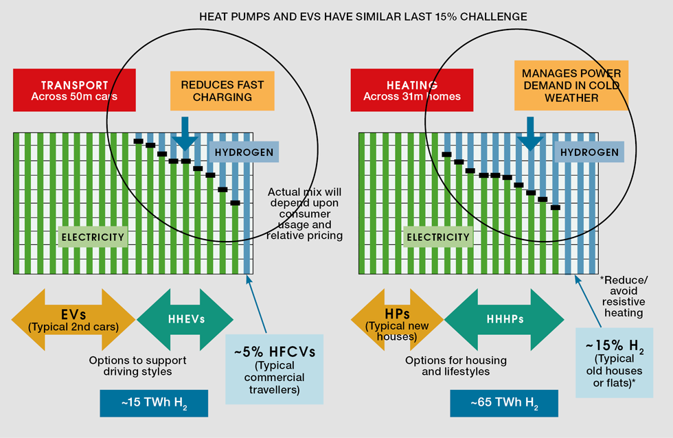 In ENZ 2 and 3 I raised hydrogen hybrid options for heating and transport as these offer consumers more choice, reduce the one-basket risk of full electrification, and lower costs. Here I will focus on heating as this is subject to a UK policy decision next year, and has a greater impact on power grid design and operation. A hydrogen hybrid heating system, a heat pump with small hydrogen gas boiler, only utilises the hydrogen boiler during cold weather or when power supplies are tight. With variable pricing, consumers can manage their costs by switching to hydrogen boiler mode at times of high power demand to offset peak prices. Indeed, AI and other smart technologies can be deployed to manage energy use in hybrid heating for the benefit of consumer and system operator alike.