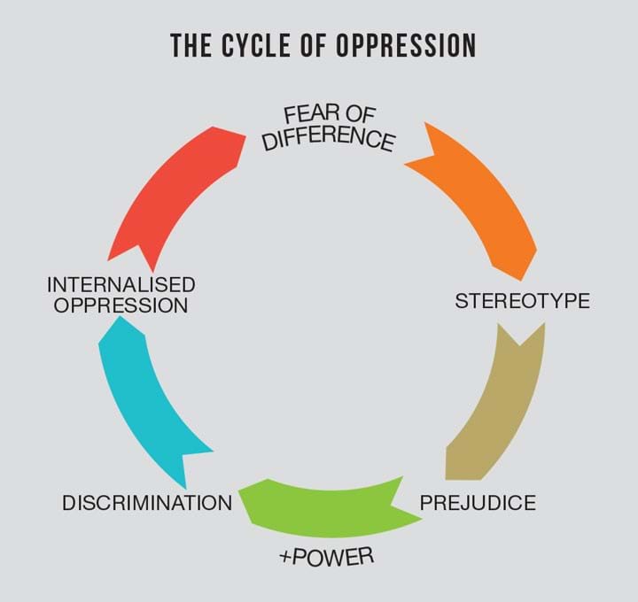 Engineers are curious, critical-thinking and creative beings, who often need to deconstruct in order to understand and apply. So what is the cycle of oppression? It begins with the fear of difference which often results in the creation of stereotypes. This in turn forms the basis of prejudice. Prejudice perpetuated by people with power leads to discrimination. Internalised oppression is when people start believing the stereotypes that they are taught about themselves from the society in which they live.