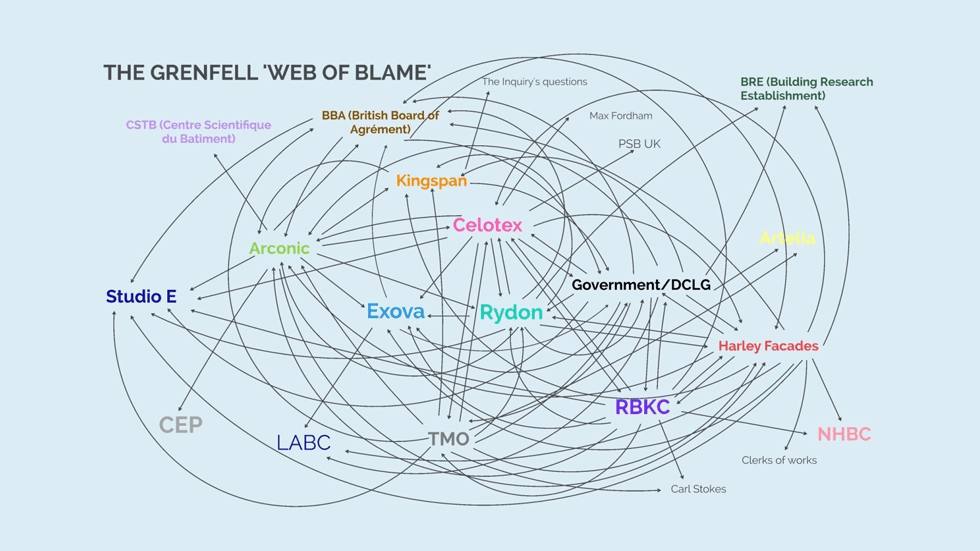 The diagram illustrates the way the parties involved in the refurbishment of Grenfell Tower blamed others during the enquiry. No doubt there will be much legal wrangling over this, but I offer this analysis of where the project failed ethically.