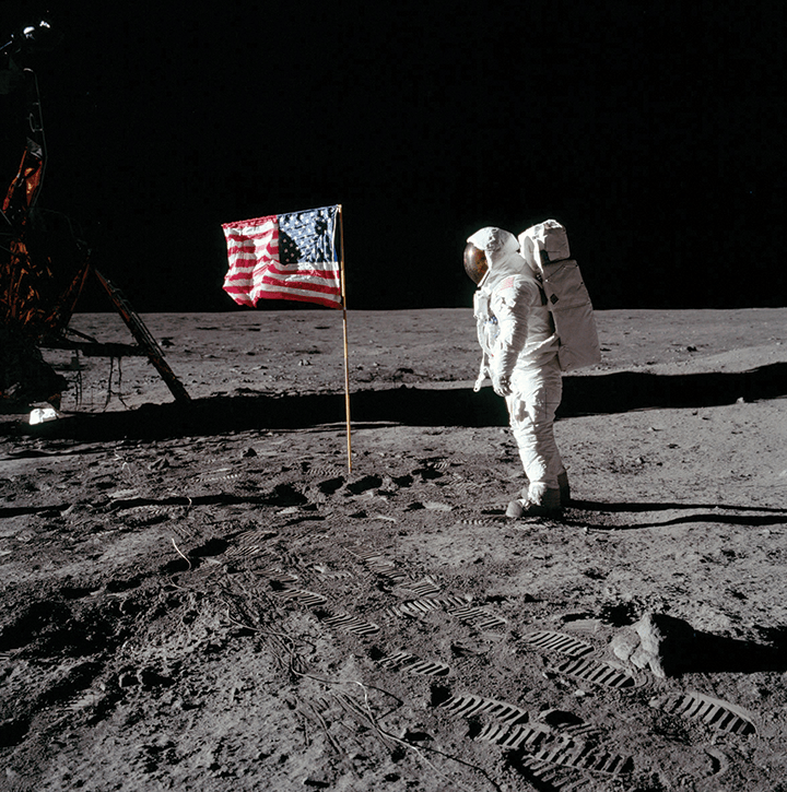 Armstrong’s heartbeat had hit 156 beats per minute when the lunar module, Eagle, reached the surface of the Moon and although they were down safely, no one knew exactly where they had landed, only that they had landed long and overshot the target point. The landing itself had been dramatic – a number of programme alarms had everyone on their toes and there would be less than 60 seconds remaining in the descent engine fuel tanks.