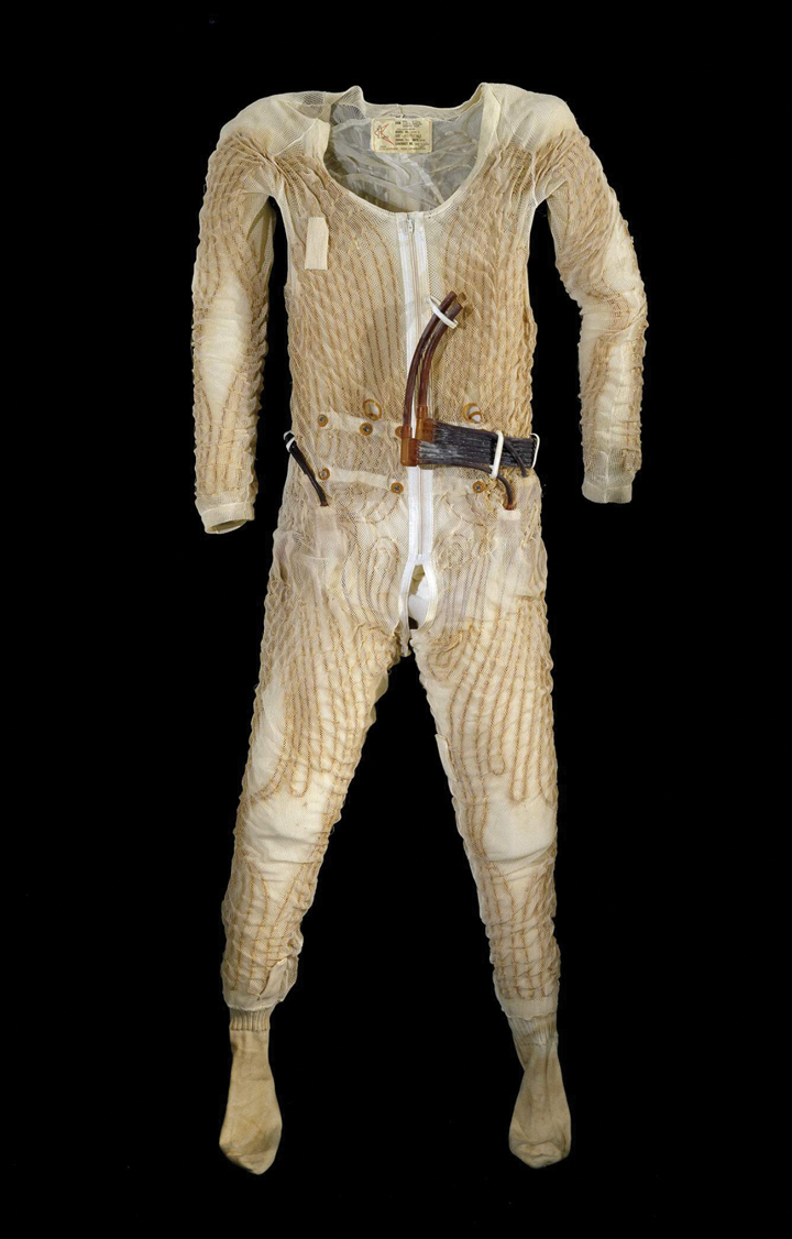 Fortunately there was no need to start from scratch as there was some existing research available that had been conducted by the British at the Royal Aircraft Establishment in the 1950s which had looked at both heating and cooling of pilots, firemen and deep-sea divers using hot or cold water circulated in a vest. The engineers were able to draw on this, and like all good ideas, a process of experimentation followed – the first prototype comprised 300 ft of 3/16” vinyl tubing wrapped around the torso, legs and arms of a test subject who was then covered in additional layers of warm clothing and an outer layer of plastic to contain all perspiration. Under medical supervision the volunteer, an HSD engineer called Harlan Brose exercised on a treadmill for tests up to 2 hours in duration.4