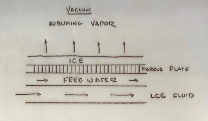 The winning design would prove to be very elegant by nature of its simplicity, as it had no valves, moving parts or power requirements and would not require any instrumentation or diagnostics. It was simply a static porous plate (a surface that has very small spaces – microscopic pores – through which air or liquid may pass) that acted as a radiator. One side of the plate was exposed to the vacuum of space and the other was in contact with the warmed water that has been circulated in the cooling loop. The warmed water is sucked into these pores where it freezes because it experiences a pressure and temperature drop when exposed to the vacuum of space. The ice then sublimes (it evaporates without melting first) and each plug gradually gets smaller due to mass loss. Ultimately, the ice plug in the pore is ejected and the pore refills with warm liquid water and the process continues. The size of these pores would be critical – they had to be large enough to meet the required flow rate of water but small enough so that ice forming in the pores would not expand and damage the surface of the plate. As the rate of sublimation was directly proportional to the heat flow it was an elegant engineering solution with no moving parts.