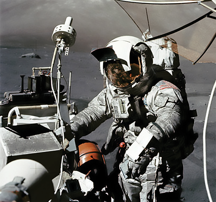 The Apollo programme would conduct 15 lunar surface EVAs over six missions without incident. The penultimate moonwalk of Apollo 17 would set a record for the longest EVA, at 7 hours and 37 minutes on 12 December 1972, and is about the limit of time that people can be expected to work intensively and productively anywhere. This record would be unbroken for 20 years, an impressive accomplishment. The crew of Apollo 17 would also traverse 35.7 km on the Moon’s surface. By comparison, the unmanned exploration rover Opportunity on Mars took eight years to cover the same distance.