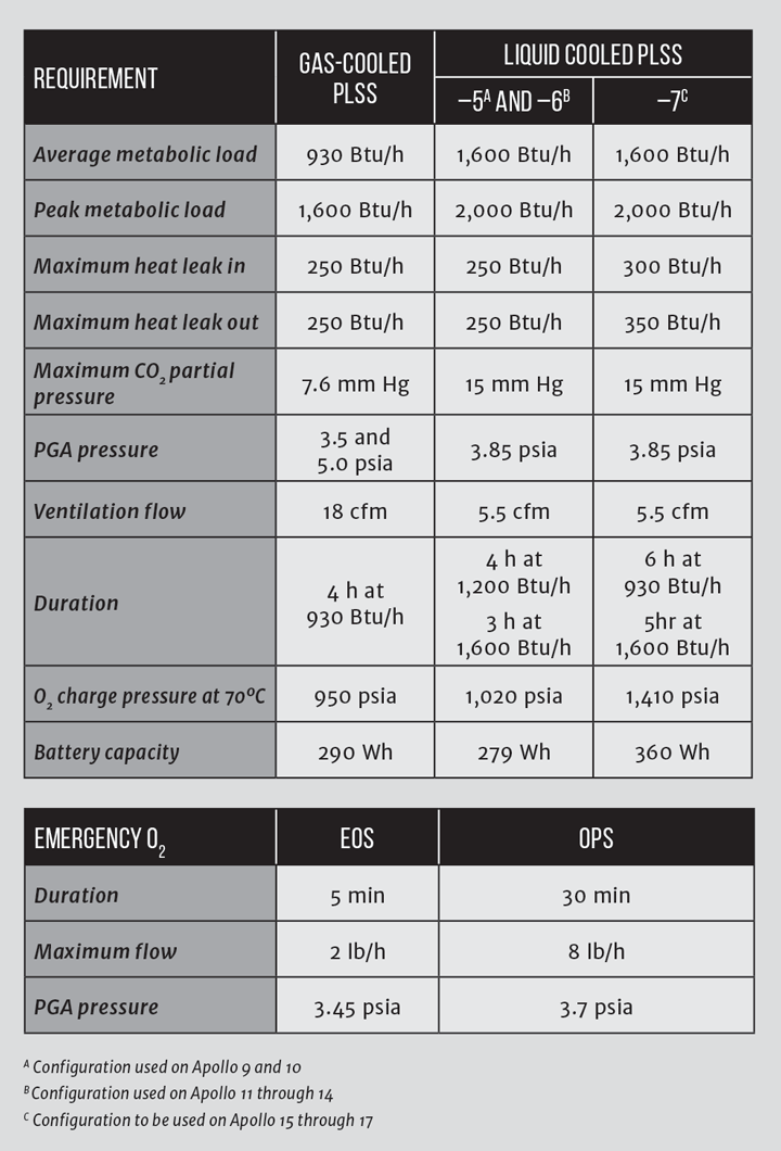 Pilots in aircraft and astronauts in earlier spacecraft had been cooled using gas circulation alone. However, whilst oxygen would provide some level of cooling as it evaporated sweat from the skin, it was evident from the experience in vacuum chamber tests and later during EVAs during the successful two-man Gemini missions in 1965–66 that gas cooling alone was not likely to be the solution. This was a big surprise – metabolic heat generation was much higher than predicted and this was in a zero-gravity environment. Cooling the astronaut by gas flow alone was not going to be sufficient and the space medics were now predicting metabolic rates possibly as high as 3,000 Btu/h. NASA would modify its requirements by stipulating that the PLSS be designed to handle a peak rate of 2,000 Btu/h and average of 1,600 Btu/h.3
