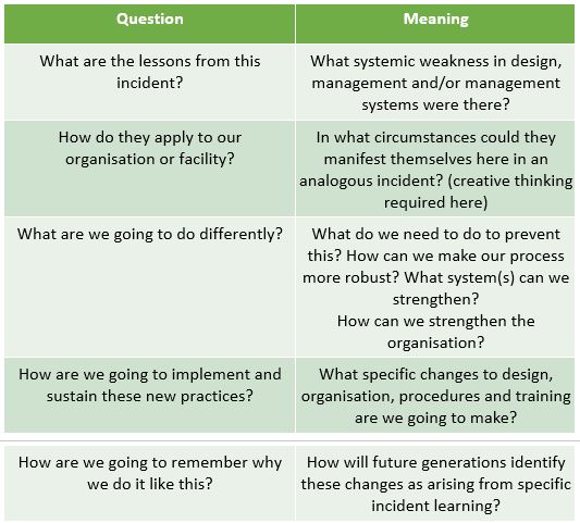 In this final article in the series, we examine the subject of learning from incidents and the challenge we face in identifying, applying and sustaining learning within our organisations.