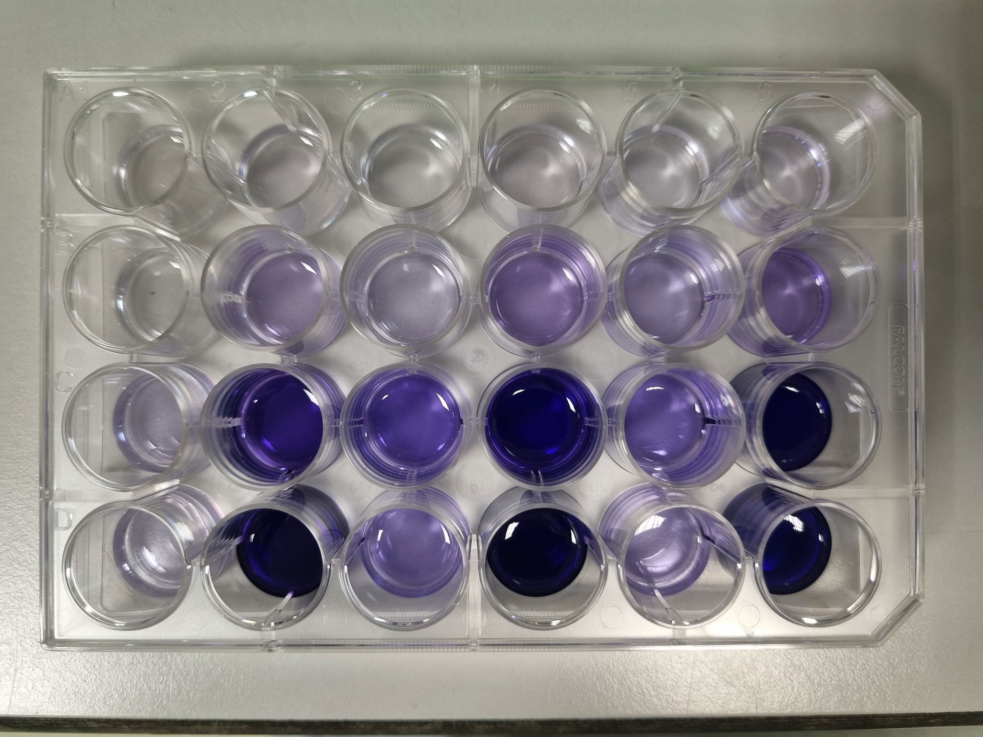 We return to the purple samples that Bourenjanshirazi has produced. One is really vibrant, while the second is much more dilute. The weaker one was grown using a poor-quality carbon source and no supplements.