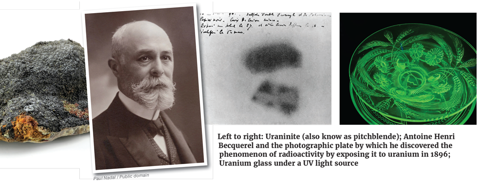 IN THE chemistry lab, I sometimes admired uranium solutions when sunlight caught the bottle, giving a green fluorescence to the yellow liquid. A similar effect was exploited by Czech glassmakers with the same colours. They added some useless black rock the miners called pechblende (bad luck ore) found among the silver ore at Joachimsthal (Jáchymov today). Known as pitchblende in English, its key component is uranium oxide. This art glass was popular in North America and Europe in the 19th and early 20th century, being particularly striking under ultraviolet light.