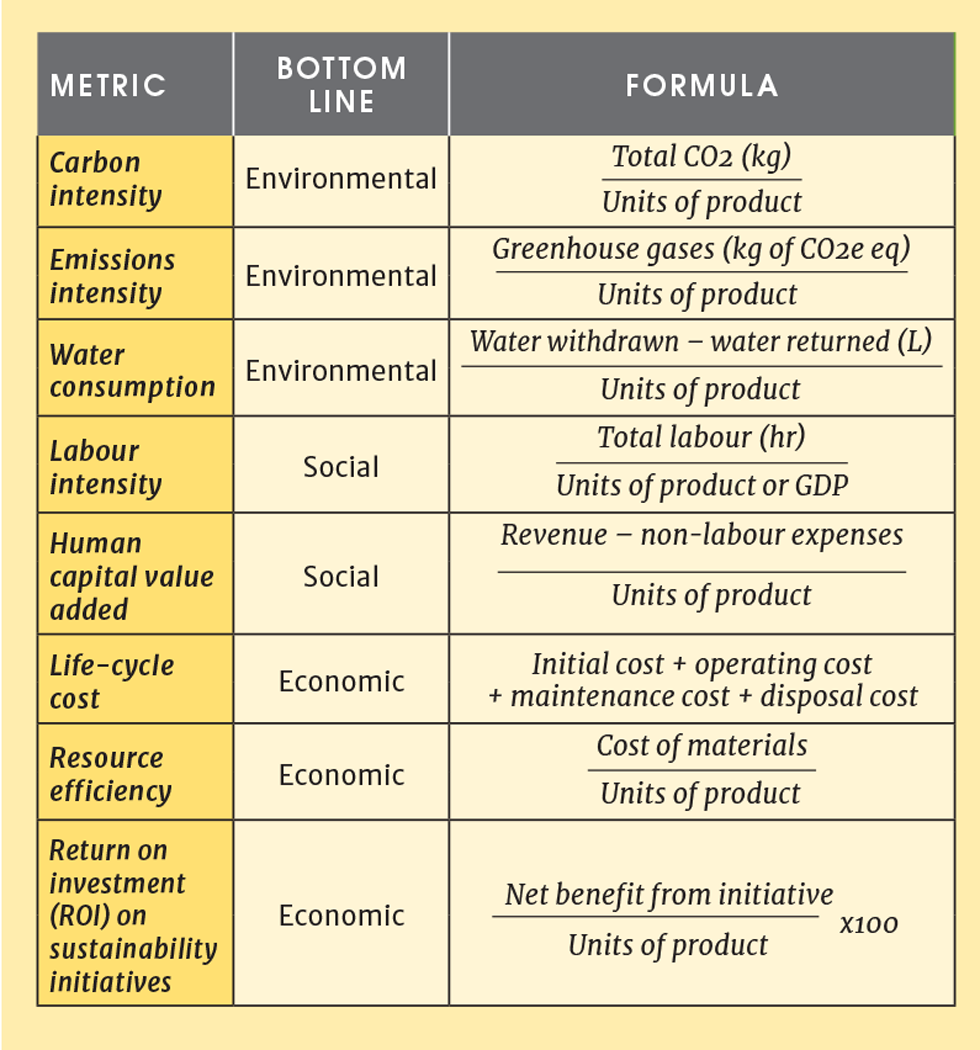 Once engineers have collected sufficient project information, quantifying sustainability impacts typically involves calculating commonly used metrics, as shown in Table 1.