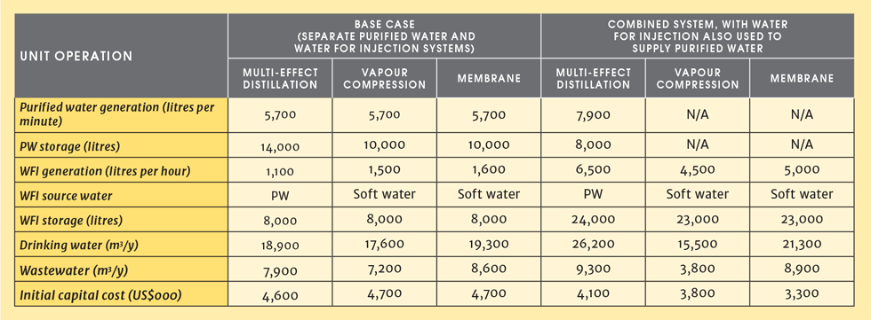Once the water demands have been calculated, equipment selections are made. This study presents a side-by-side comparison of multi-effect distillation, vapour compression, and membrane WFI generators based on vendor-supplied standard equipment.