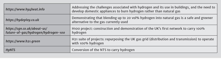 A key principle of our current work is understanding how hydrogen differs from incumbent technologies and when those differences really matter. When behaviour differences are understood, engineering or procedural solutions can be applied to maintain safety. We are increasingly involved in advising on safety for a range of hydrogen technologies, including production at scale, and demonstration of potential applications in power, heat and transport. Areas where the HSE has been particularly involved are listed in Table 1.