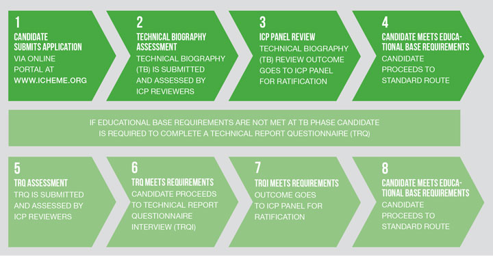 The starting point is for all candidates who apply through the new ICP process to be in IChemE membership at the appropriate grade (Associate or Affiliate Member) before they apply, and they must remain in membership throughout the process.