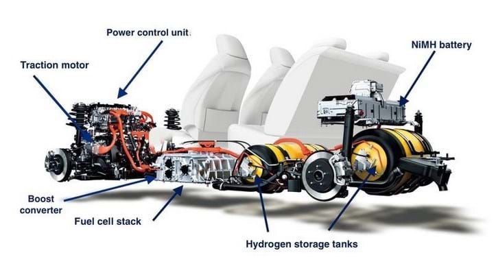 Japan’s massive car industry is getting on-board with its ‘big three’ (Toyota, Nissan, Honda) teaming up with Air Liquide to boost the national re-fuelling network. And, having pioneered the Prius petrol-hybrid in the 90s, Toyota recently launched the Mirai (see Figures 1 and 2), the world’s first purpose-built hydrogen fuel cell vehicle. Its hydrogen-fed fuel cell can even power homes, potentially a life-saver in an earthquake-prone nation.