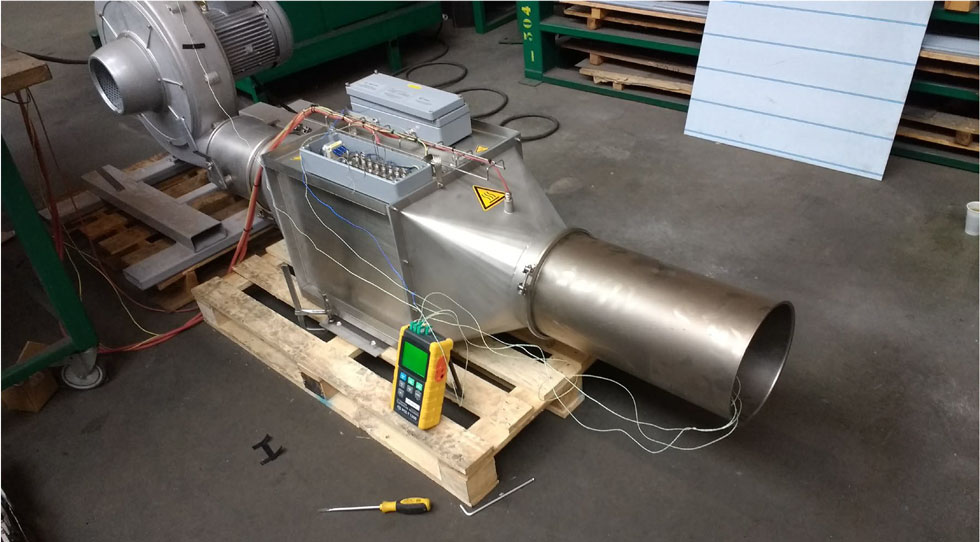 To achieve the necessary heat transfer while minimising the heat load, our design required an extensive 30 m of specialised heating elements. Complementing the heating system, a dedicated ATEX-compliant control panel ensures precise regulation of the airflow and temperature parameters throughout the drying cycle.