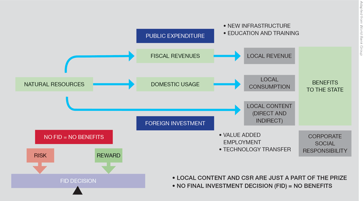 The toolkit for the construction phase essentially comprises what both investors and governments call local content (LC) assessments – ie what can be achieved with local resources (labour, services and goods). Governments insist on these to maximise both local and state benefits, but ultimately fall back on legislation.2 On the other hand investors, working with their contractors, look to minimise cost, maintain schedule to maximise returns, endeavouring to reduce risk by using known and proven resources. Indeed investors often don’t have a real handle on managing LC, often bundling scope into major EPC contracts.