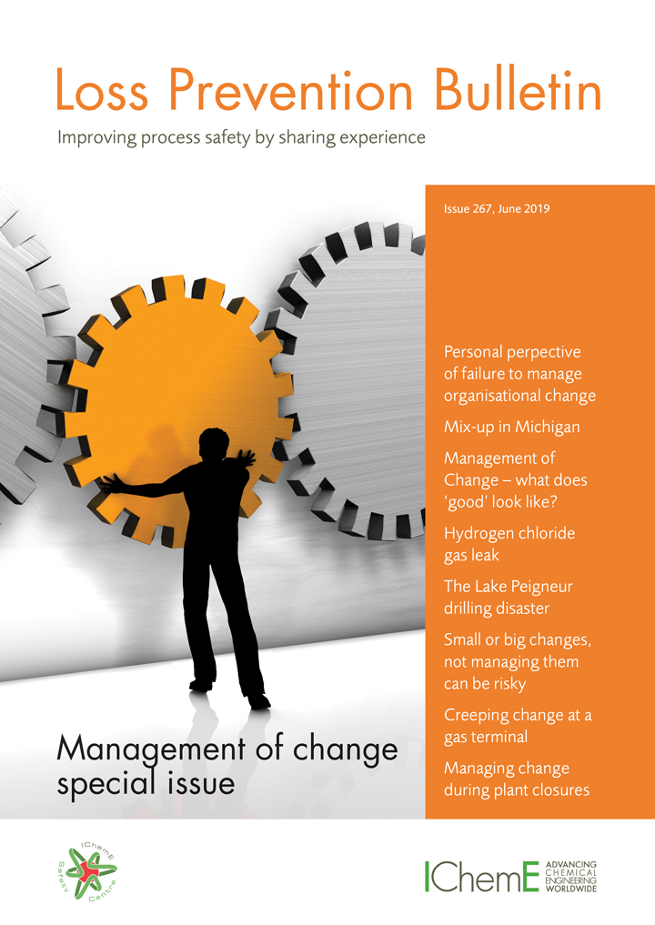 Since then much has been learned – and written – about how to manage change safely and successfully but the process industries continue to make mistakes, with serious and sometimes fatal consequences. Recognising this continuing problem, this month’s Loss Prevention Bulletin (LPB) has a special issue on management of change.