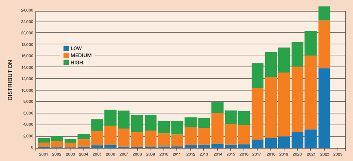 Cybersecurity breaches affecting consumers are increasingly making headline news. Often, the first piece of advice offered is to regularly “patch” your systems. The terminology can vary, but typically “patching” (or “updating”) refers to small, highly-targeted changes to computer software to fix functional or security issues. In contrast, “upgrades” are larger changes which may add new features or remove unmaintained functionality. Periodic and reactive patching should be performed frequently to minimise the time exposed to known vulnerabilities. Patching is becoming increasingly important as the number of known vulnerabilities continues to climb (Figure 2).