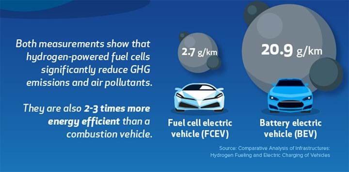The Canadian Hydrogen and Fuel Cell Association recently produced a publication outlining the case for hydrogen. Within the publication is the following graphic showing the FCEV being an order of magnitude better than the BEV with respect to carbon footprint.