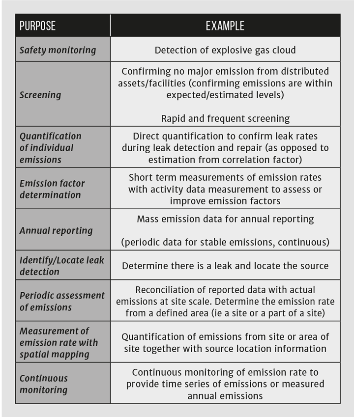 There are increasing requirements for more measurement-based reporting and the use of site-specific emission factors. Direct measurement of emissions can capture emissions that are not expected, ie those not within the usual range of emissions covered by calculations, or are from sources that have not been considered. For example, the Oil and Gas Methane Partnership’s (OGMP 2.0) framework for reporting emissions requires, at its highest tier, reporting based on site specific emission factors and reconciliation of these reported emissions against site level direct measurements. CEN TC234 Gas Infrastructure is currently developing a framework approach for quantifying and reporting emissions from gas transmission, distribution storage and LNG terminals. Some industries or individual companies (such as BP’s Aim 4) are going further, and are committing to introducing continuous emission measurement to provide either monitoring to rapidly identify leaks or continuous quantification of emissions.