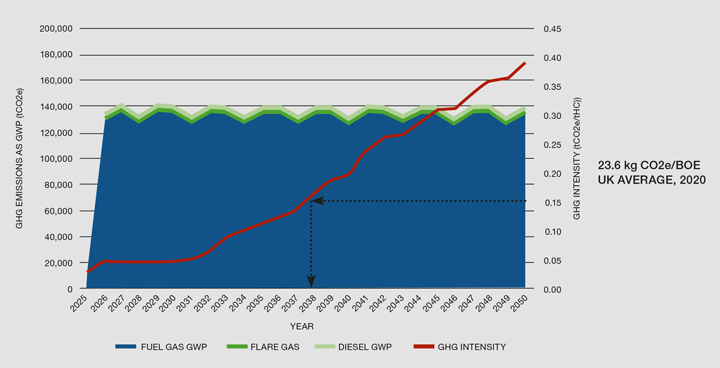 Incorporated onto the chart is the UK average CO2e emissions in 2020. As you can see, for around 13 years Cambo would produce at an emissions rate lower than the UK average.