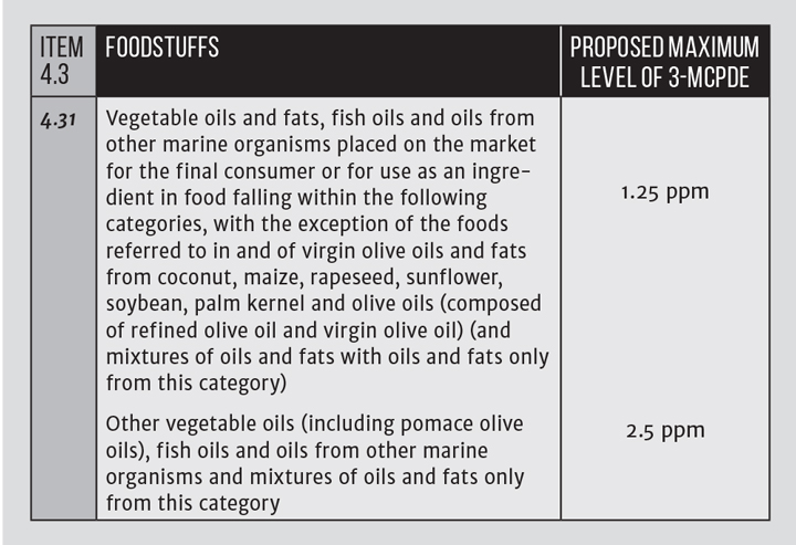 EFSA maximum levels of 3-MCPDE are as in Table 1.