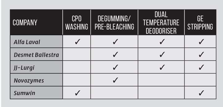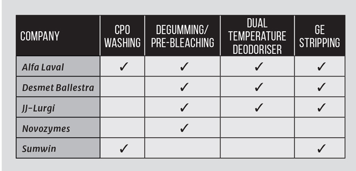 It also offers a GE stripper that operates at <1.5 mbar(a) and temperature between 230-240°C to achieve GE <0.5 ppm and FFA <0.05% in RBDPO.