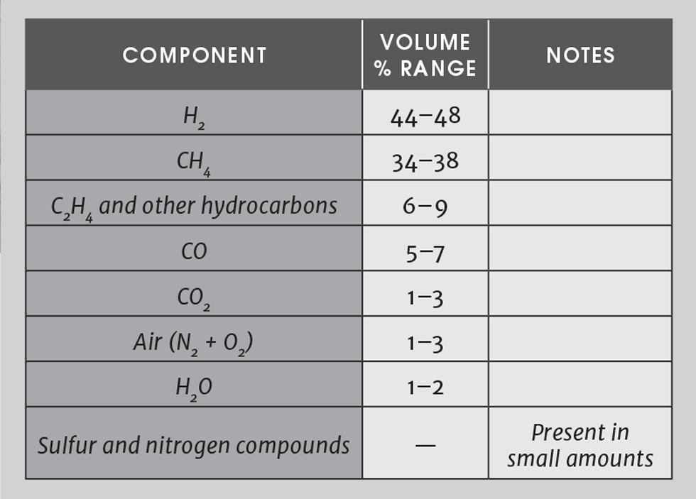 This was a mixture largely of hydrogen, methane and carbon monoxide. Made from pyrolysing coal, it provided light, heat and power for homes and industry in Britain for 150 years until it was replaced by North Sea Gas (methane) in the period from 1967 to 1977. An 1878 engineering report on coal gas gave its composition as follows: