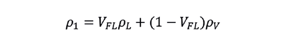 For a supercritical CO2 pipeline at 733 kg/m³, cooling to 20°C (at constant mass and volume) will result in a two-phase mixture. The pressure in the pipeline will be the resulting vapour-liquid equilibrium (VLE) pressure, which is 57 bar. The starting density and the resulting saturated liquid and vapour densities are known. The resulting volume and mass fractions of liquid in the containment can be calculated by rearranging the density conservation equation: