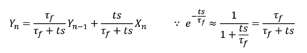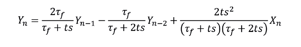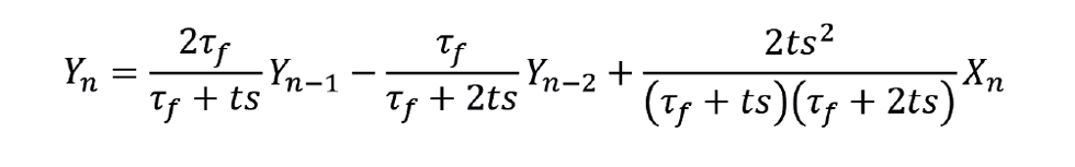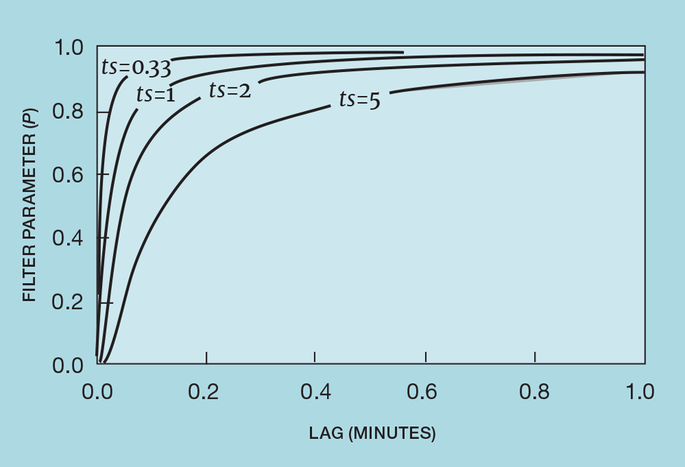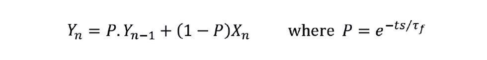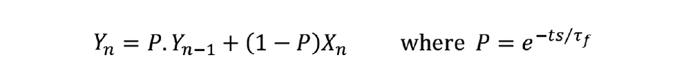 All control systems have the option to filter any measurement – usually by applying the first order exponential filter. First order, because it introduces a single lag ( τf) and exponential because of the digital approximation. In general, it takes the form