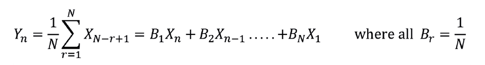 Figure 5 shows its effectiveness. Even with N set to the minimum value of 2, noise is halved. In terms of its effect on process dynamics (following a step change in input), rather than an exponential approach to steady state, the moving average filter produces a ramp of duration N × ts. However, when added to the process lag, the result is indistinguishable from that with the exponential filter. Curve fitting shows we can approximate the filter lag time constant as 0.53N × ts. Given that it is not usually a standard feature of most DCS, the moving average filter offers no advantage over the exponential filter.
