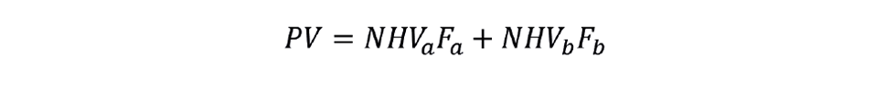 Figure 7 shows an alternative configuration in which the two flows are summed to provide the measurement of a total flow controller. If the fuels have different heating values, the PV of this controller is given by: