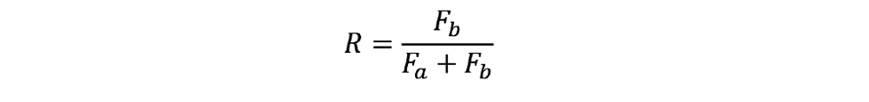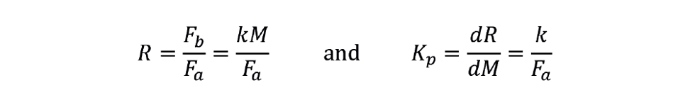 A commonly used, but less preferred, method of providing ratio control is shown in Figure 3. Here the ratio is calculated from the flow measurements and becomes the PV of a PID controller that has the ratio target as its setpoint. If we assume that Fb is proportional (with constant of proportionality k) to the valve position set by the PID controller output (M), then: