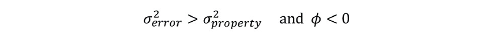 Before plotting φ we make a minor change to its calculation. In our example, the cause of each prediction error is a change in the actual, rather than predicted, price. So, both σerror and σproperty change and φ therefore changes very little. The solution is to use the previous value of σproperty . So, a better definition is: