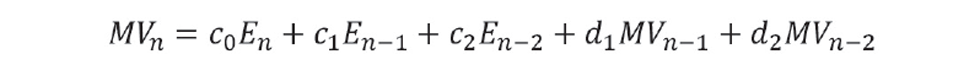 Written in the same form, the Dahlin algorithm includes, as the last term, the value of the MV which is responsible for the current value of the PV. This is the value collected N scan intervals previously, where N is θ/ts: