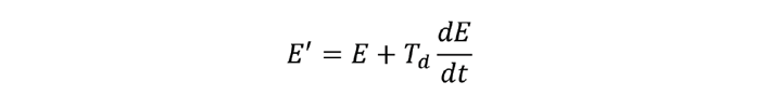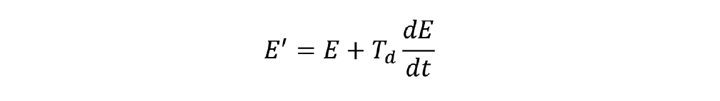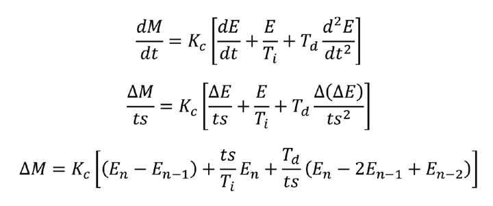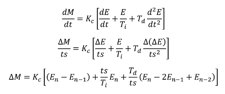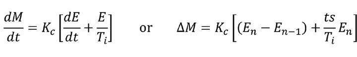 This is generally known as the ideal version of the algorithm. An alternative version adds derivative action to the PI controller by replacing E with the projected error (E’) – again anticipating the need to take corrective action.