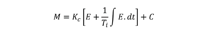 No matter how large we make Kc , we cannot reduce E to zero. To resolve this, we add integral action. The principle is to change M at a rate proportional to the error. In other words, M will only stop changing once the error is zero. Extending the P only controller to include integral action gives the PI controller. The amount of integral action is determined by our second tuning parameter – the integral time (Ti)