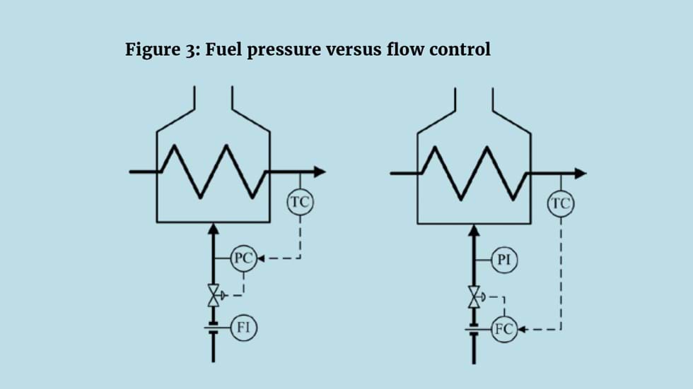 Figure 2 shows a scheme implemented at one of the author’s former client sites. The site had a circulating fuel header from which its fired heaters and boilers took their supply. Flow measurements were installed on both supply and return – the idea being that consumption could be determined by the difference between the two. This proved unreliable. For example, fuel consumed on a heater might be around 5% of the flow through the header. So, a metering error of 1% in both flowmeters could therefore result in a 40% error in the calculated difference. Indeed, when fuel consumption was low, the calculated difference could even become negative. Without a reliable measurement, it was simply not possible to install a fuel flow controller.