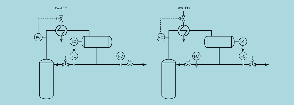 Tight level control is installed where maintaining the level at set-point is more important than maintaining the manipulated flow as constant as possible. For example, we would not want to risk a high liquid level in the suction (knock-out) drum of a compressor. The liquid is likely to be routed to some recovery system that can readily absorb rapid changes in flow. Tight level control is also required on steam drums. We would not want to risk a low or high water level and there is little advantage in gradually changing the flow of boiler feed water from storage. Other examples include the level control at the base of some types of distillation columns – particularly those with a kettle-type reboiler that must always be kept totally immersed.