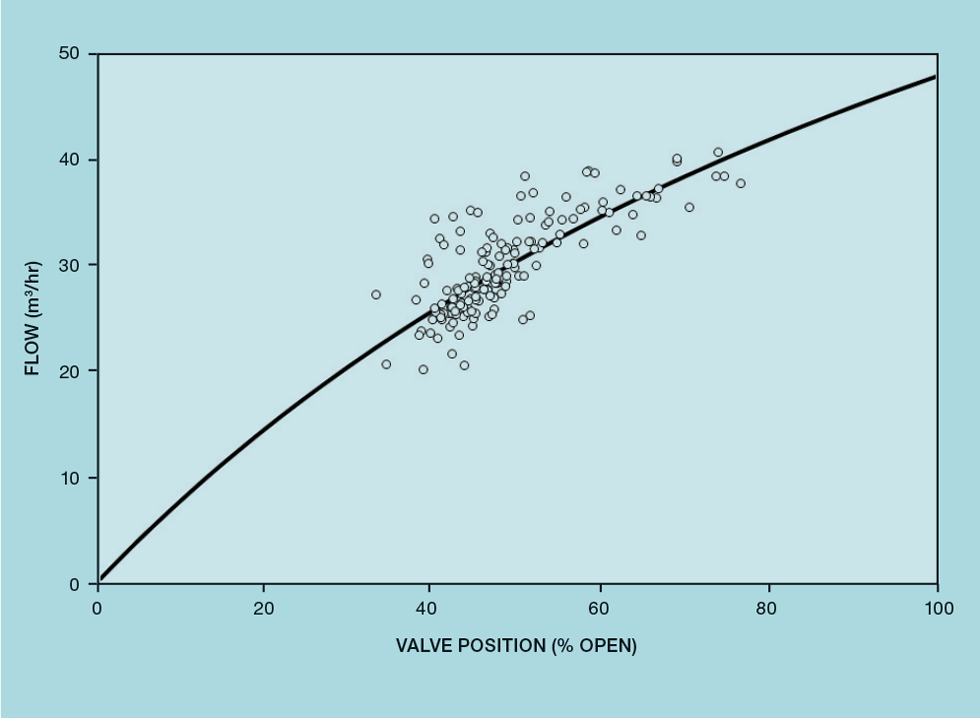Figure 4 plots historically collected data of flow versus valve position (the scatter is partly due to the process not always being at steady state).