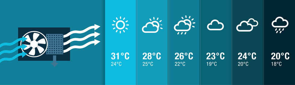 The weather has an impact on the performance of DAC in two ways: in the temperature and the humidity of the air that’s coming in. So how hot and how much it has been raining has a significant impact on performance.